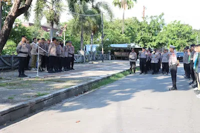 "Apel siaga pengamanan malam takbiran Idul Fitri ini, bertujuan mengantisipasi gangguan kamtibmas wilayah hukum Polres Pelabuhan Makassar"Kasi Humas IPTU Hasrul, Jum'at (21/04/2023)