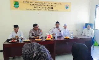 Kapolres Karawang Polda Jabar, AKBP Fiki Novian Ardiansyah, SH., SIK., MKP., M.Si melalui Kapolsek Pangkalan, AKP H. Asep Kosasih mengatakan bahwa kegiatan minggon desa merupakan sarana saling berkomunikasi dan dengar pendapat antar aparatur, lembaga desa dan masyarakat.